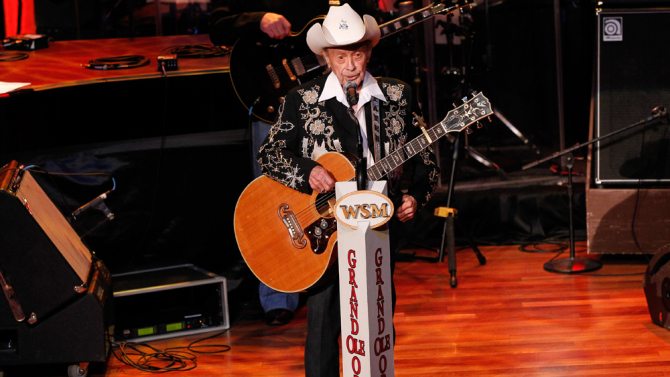 James Cecil Dickens, better known as Little Jimmy Dickens, was an American country music singer famous for his humorous novelty songs, his small size, 4’11” (150 cm), and his rhinestone-studded outfits (which he is given credit for introducing into country music live performances). He started as a member of the Grand Ole Opry in 1948 and became a member of the Country Music Hall of Fame in 1983. At the time of his death, he was the oldest living member of the Grand Ole Opry.