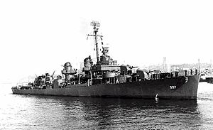 USS Johnston (DD-557) was a World War II-era Fletcher-class destroyer in the service of the United States Navy. She was the first Navy ship named after Lieutenant John V. Johnston. The ship was most famous for its bold action in the Battle off Samar. The small “tincan” destroyer armed with nothing larger than 5 inch (127mm) guns and torpedoes would lead the attack of a handful of light ships which had inadvertently been left unprotected in the path of a massive Japanese fleet led by battleships and cruisers. The sacrifices of Johnston and her little escort carrier task unit “Taffy 3” helped stop Admiral Kurita’s powerful Center Force from attacking vulnerable U.S. landing forces, and inflicted greater losses than they suffered.