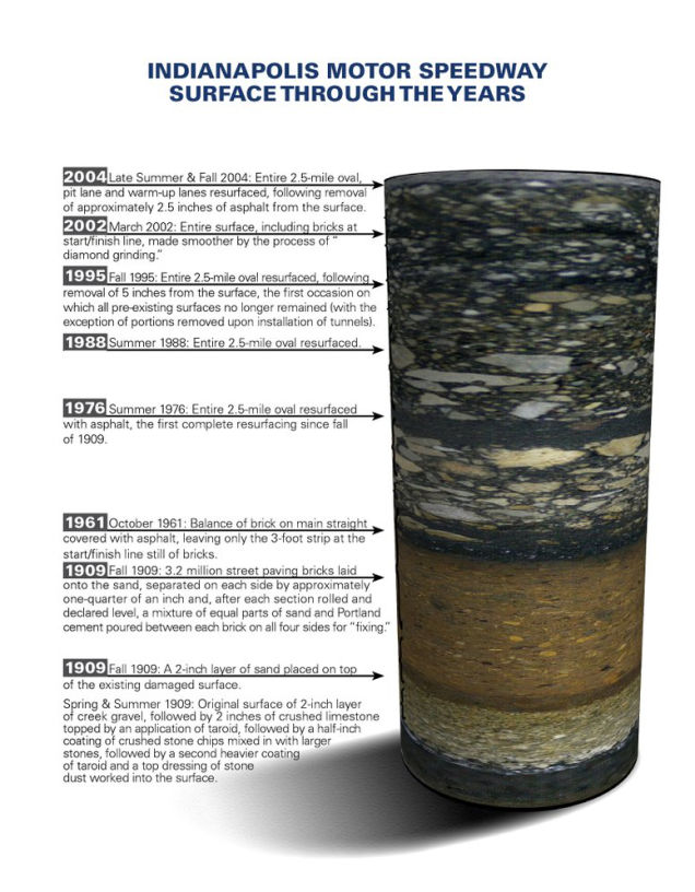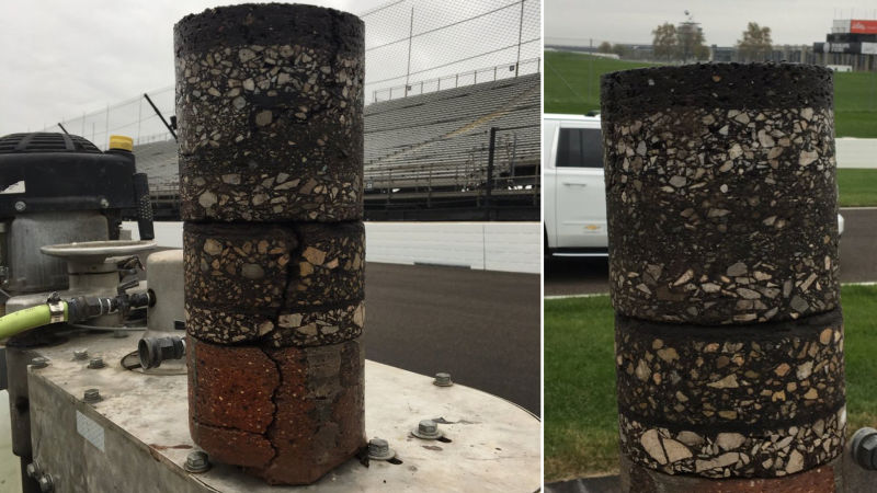 Last month, Indianapolis Motor Speedway president J. Douglas Boles posted this picture of a core sample taken of the track: