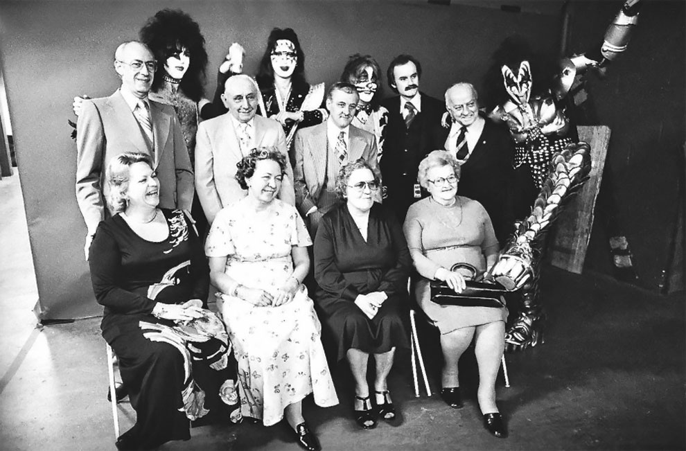 Group photos of KISS at Madison Square Garden backstage together with their parents in 1977.
